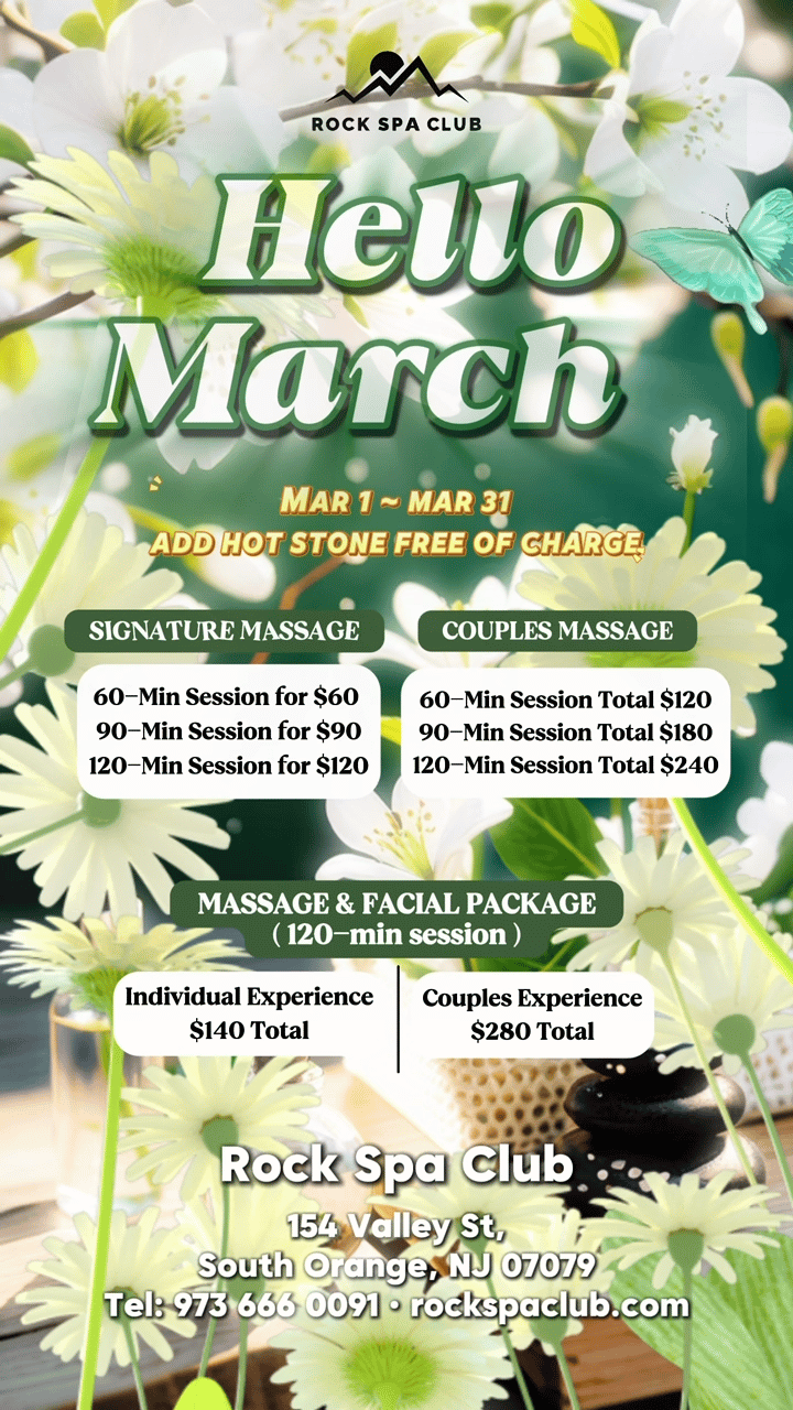 This New place ROCKS!!! Best birthday gift ever and a massage on my birthday! Fantastic Signature massage with Hot stone and Aromatherapy from Tina right here in my home town South Orange. I've had massages in New York City and in Chang Mai, Thailand. This one is right up there, probably the best one ever.Tina knows her craft. Nice, clean and serene. The interior is just right, love the murals . I highly recommend this new gem in South Orange. Can't wait for my next visit!